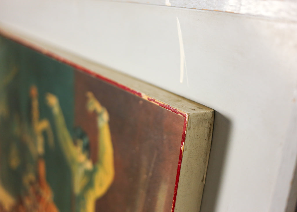 Condition: Fair. Some wear consistent with age on the frame and the print itself. Framed. No glass.