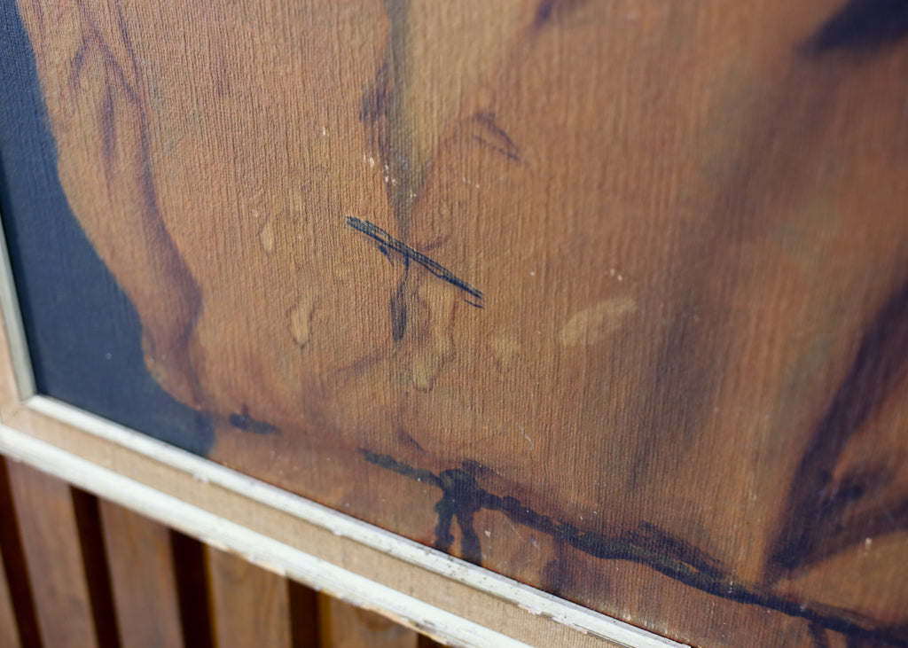 Condition: Fair, the frame is damaged and some water stains on the print. Look at the pictures for detail.