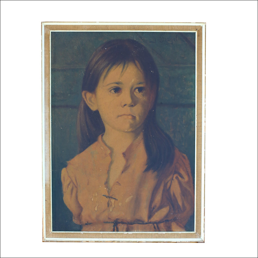 This well-known little crying girl, titled "Bambina" by Bruna Amadia, aka Giovanni Bragolin (1911-1981), is a copy of one of 68 portraits of crying children in the post WWII years in Venice.