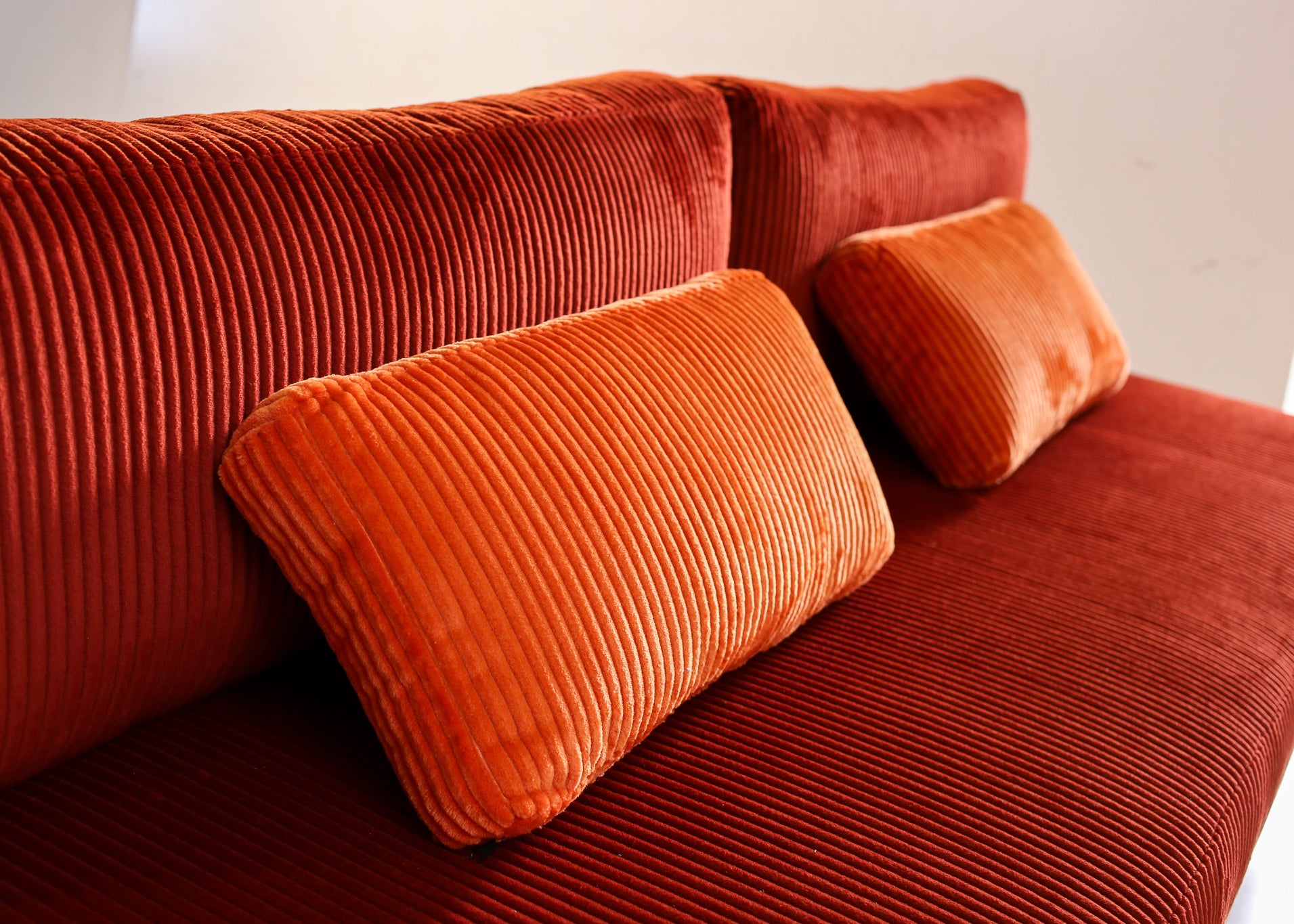 The fabric is a charcoal linen-like hardwearing textile. Two smaller back support scatter cushions are included.