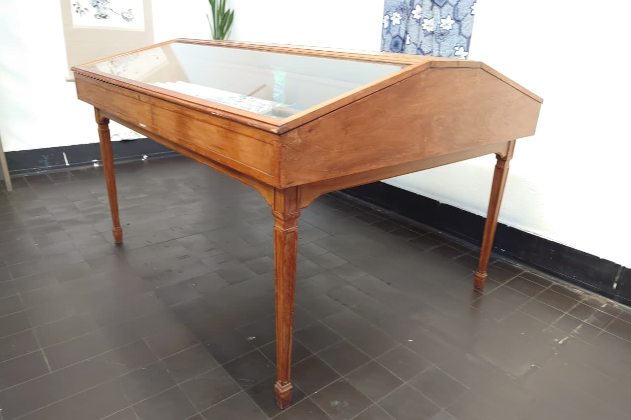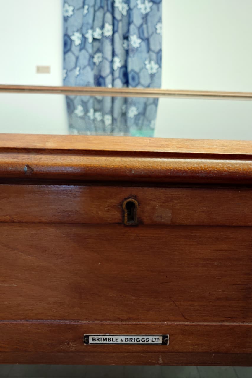 A large, teak, museum display case by Brimble & Briggs, a Cape shopfitting company that was established in the early years of the previous century.