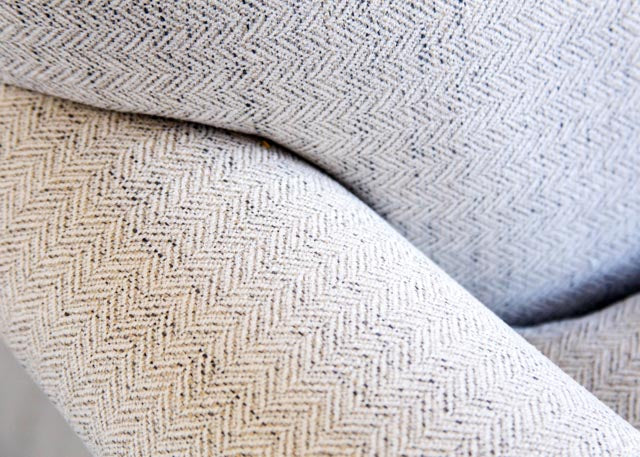A mid-century three-seater sofa by Grafton Everest in new herringbone upholstery. Look at the close-up pictures for the best representation of the off-white colour and pattern.