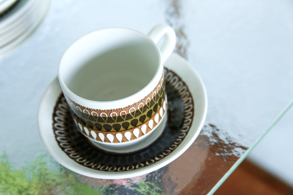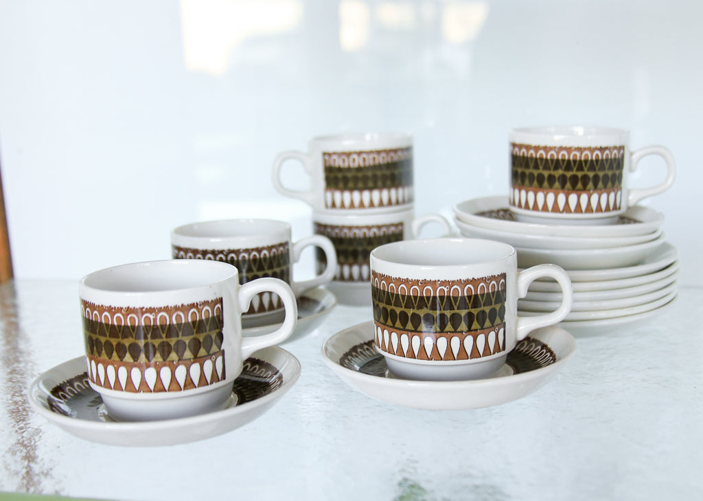 A retro set of six cups with saucers and cake plates by Biltons, Staffordshire England.