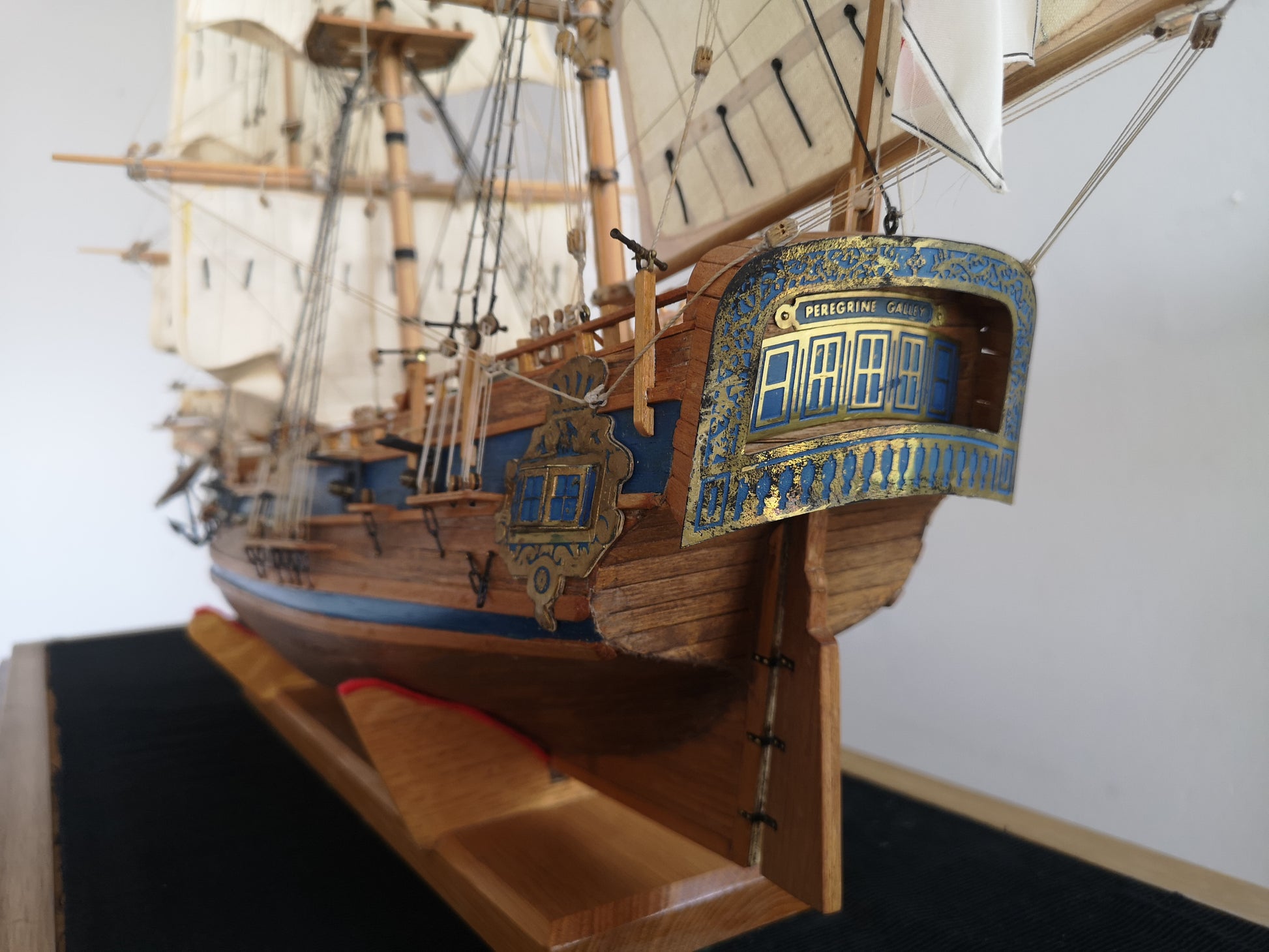 An assembled vintage Sergal Mantua 1:60 scale kit model of the the Peregrine Galley 1700, launched in 1704.