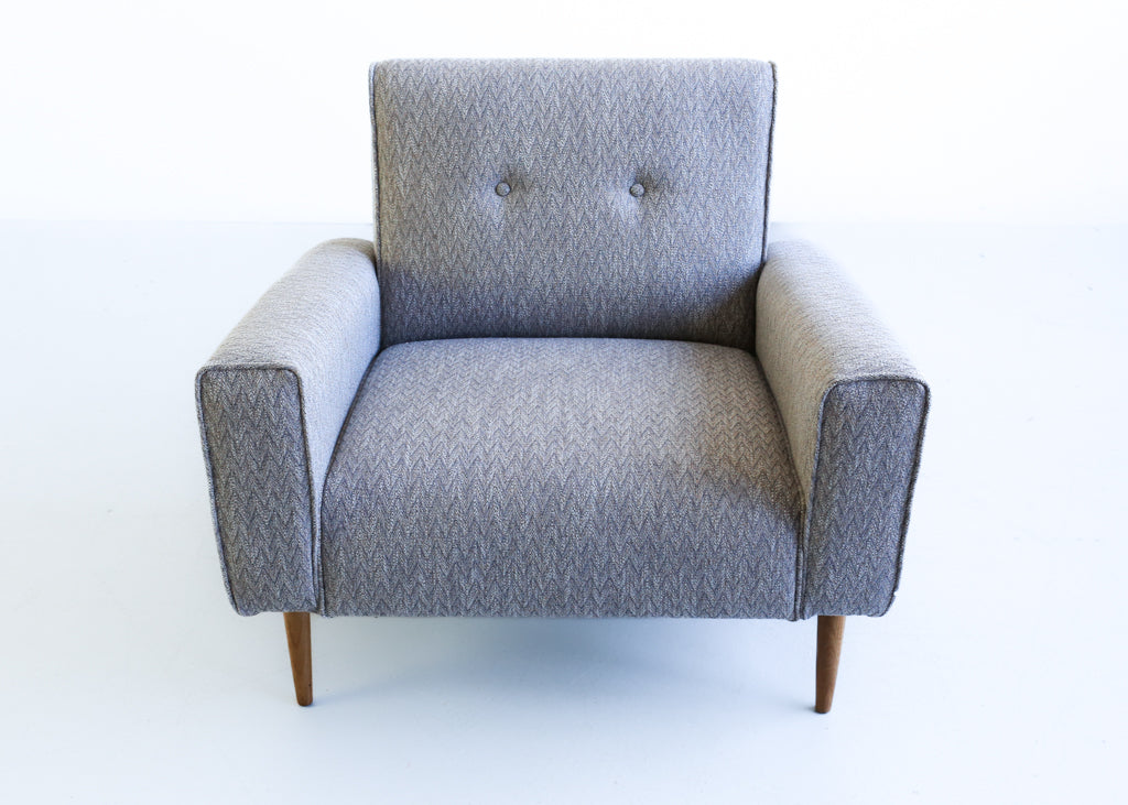 The Lula is a Huisraad design in the mid-century Scandinavian modern style. It has a low back, tapered Rhodesian teak feet, and prominent arms with a cheeky forward angle.